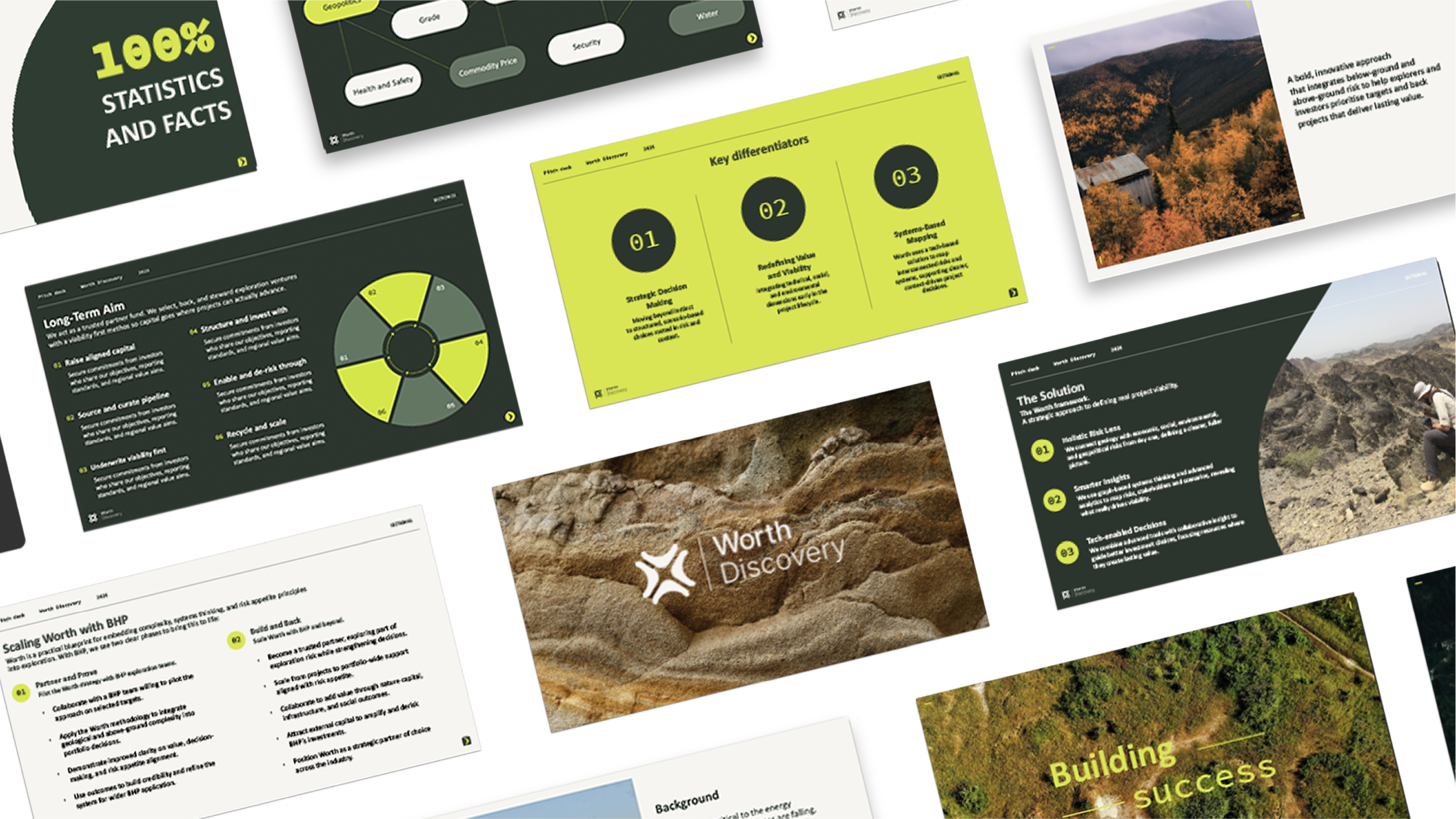 Creating a brand identity for Worth Discovery. This was rolled out into a presentation template.